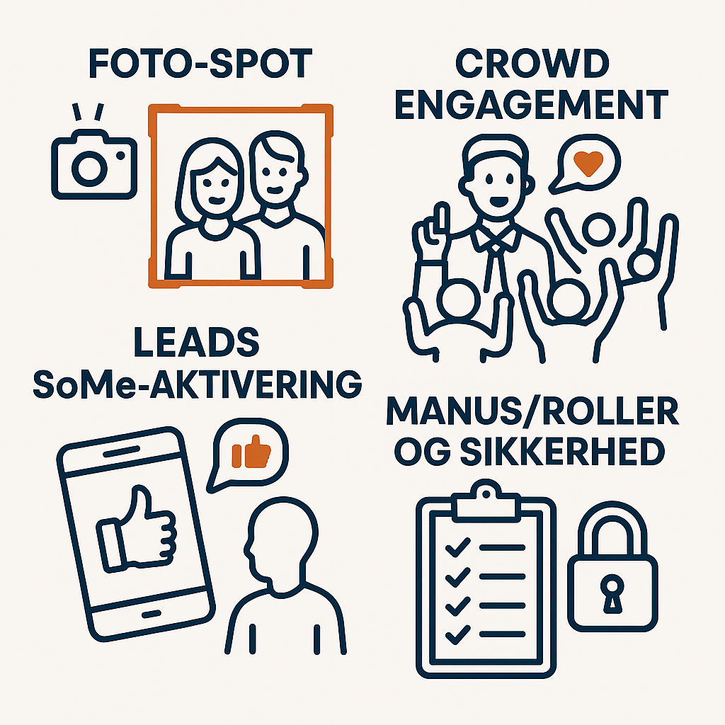 Et godt foto-spot kan være forskellen på et event, der bare bliver “oplevet”, og et event, der bliver delt, husket og omsat til leads. I denne guide får du en praktisk ramme for at designe et foto-spot, der skaber crowd engagement, aktiverer sociale medier, understøtter et klart manus med roller og samtidig lever op til krav om sikkerhed.